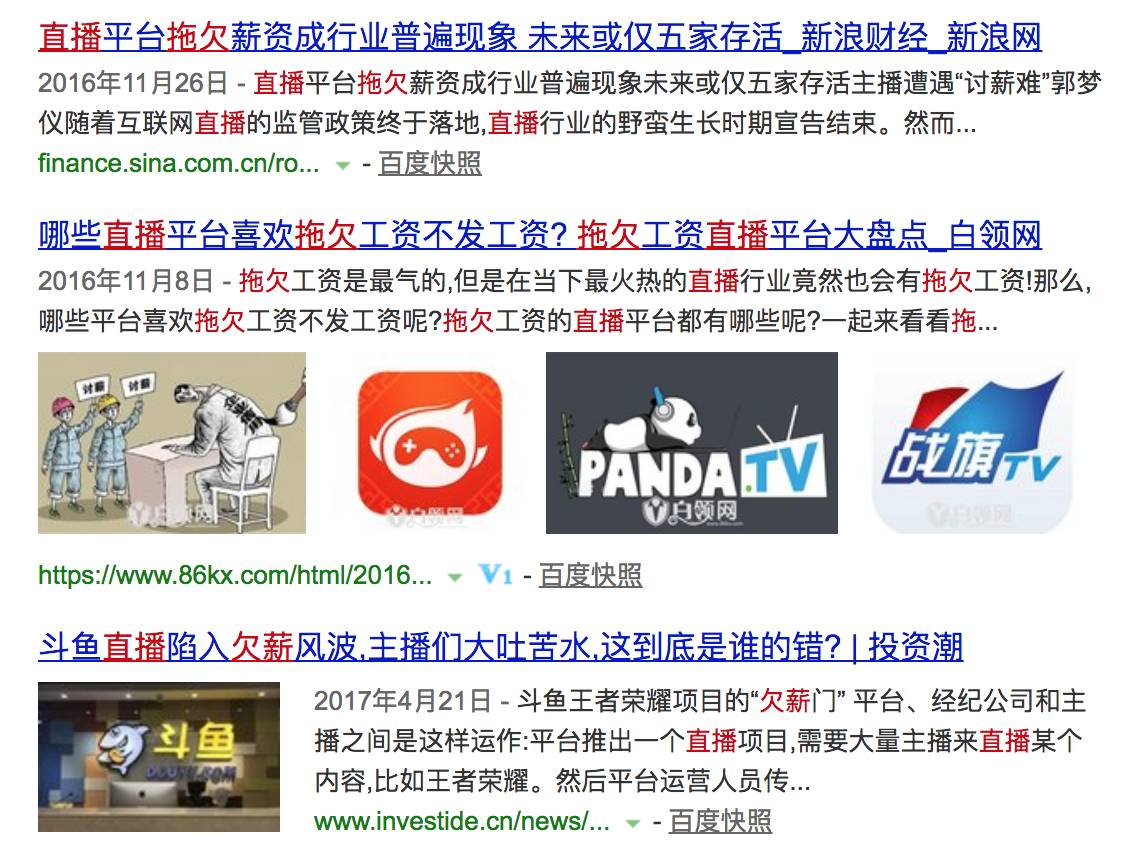 据《中国经营报》报道,直播平台薪水拖延发放已经是行业普遍现象,像YY直播这一批最早出现的公司较少拖欠工资。但在直播行业野蛮生长期发展起来的公司,比如熊猫直播、斗鱼、六间房和全民TV等网络直播平台,会经常性的拖欠薪资。