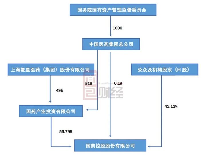 下图为面包财经根据财报绘制的国药控股股权结构图: