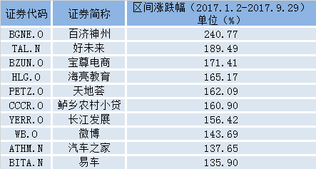 百济神州(BGNE.O)和好未来(TAL.N)领涨在美中概股,过去的九个月,百济神州涨幅高达240.77%,好未来上涨189.49%。