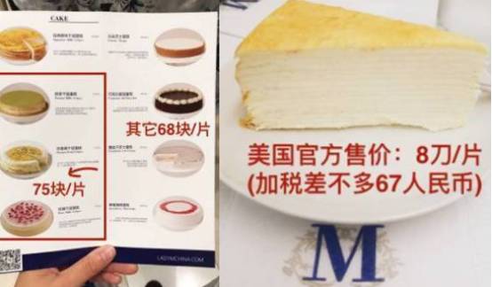 其实Lady M门店蛋糕的实际销售价格并非那么离谱!75元一块跟美国8刀一块算下来也差不多,黄牛经手直接翻倍!