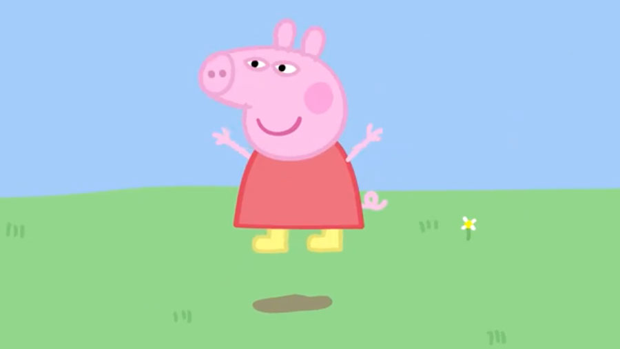 比如第一集,讲的是佩奇和弟弟乔治在泥坑里各种跳。▼