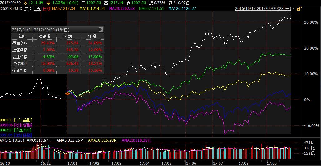 从年度运行情况看,界面60投资组合年初以来累计上涨29.43%,领先市场主要指数,不仅领先沪深300的15.90%及上证综指的7.90%,更是大幅领先深证综指和创业板综指,年化回报高达41.37%。