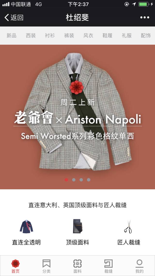 和张沫凡主动让她的微博和产品品牌密切互动、直接引流到淘宝店铺不同,杜绍斐对商品品牌与媒体品牌、品牌与个人的关系进行了另外的思考。他从一开始就有意识地拉远公号《杜绍斐》和他创立的定制西装品牌“老爷会”之间的联系。老爷会是杜绍斐推出的定制西装品牌,提供量体定制服务,复购率超过50%,会员目前有数千人。