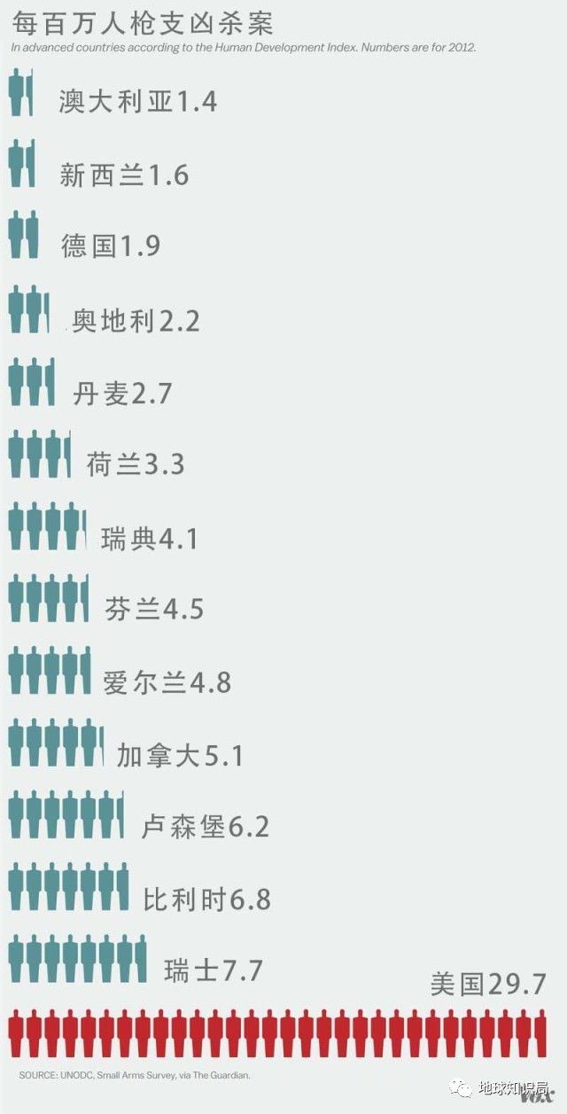 6 问题不仅在美国,其它保有更多枪支的发达国家枪杀案也更多: