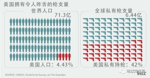 2 美国的人口占据世界世界的4.4%,可是接近半数的美国公民都保有枪支: