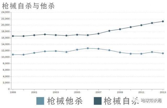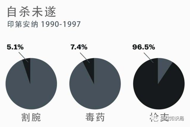 或许,枪支的易于获取使得自杀数激增的原因在于,枪击比起其它手段,例如刀砍或毒药,都更加容易致死。