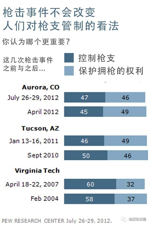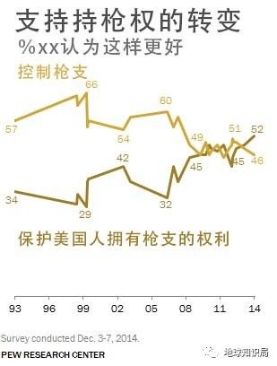 根据“普调查中心”的调查,在过去20年里,美国支持私人枪支保有权的人数明显增加。这个变化,在一些著名的持枪袭众案比如哥伦比因高中枪击案和桑迪.胡克小学枪击案在媒体广受瞩目和报道之后,甚至更为显著。(为了自保?)