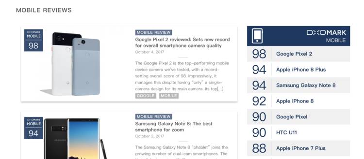 去年 Pixel/Pixel XL 后,两款手机凭借 89 分的成绩,成为了 DxOMark Mobile 数据库中摄像头得分最高的智能手机。虽然后来 Pixel/Pixel XL 的成绩被 iPhone 8、三星 Note 8 等产品超越(也有规则调整的原因)。不过随着 Pixel 2/Pixel 2 XL 发布,两款新机凭借 98 分的成绩再次帮“G”字头手机夺回了宝座。