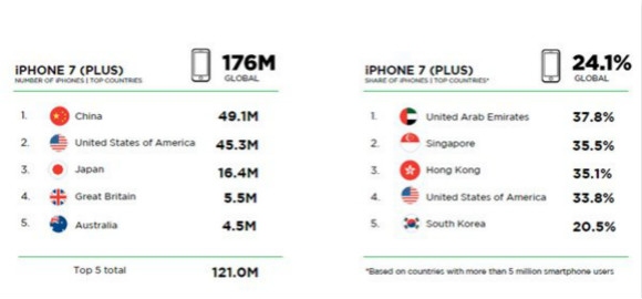 另外,目前全球有1.76亿部iPhone 7/7 Plus正在使用中,中国用户贡献仍然最大,占4910万部。
