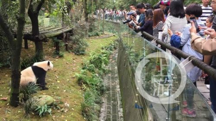 据上游新闻-重庆晨报报道,10月6日,记者在四川熊猫谷一看到些不文明的场景,有游客冒险翻越栏杆拍照,还有游客用树枝串起苹果违规给熊猫喂食。
