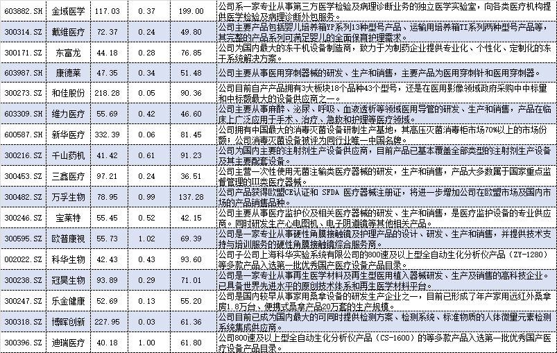 界面新闻梳理了医疗器械板块部分上市公司的情况。