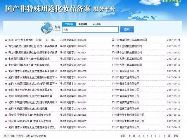 自2014年6月1日实行国产非特殊用途化妆品网上备案至今,国家食品药品监督管理总局备案系统中,产品名含“礼盒”二字的非特殊用途化妆品备案信息有2614条记录。