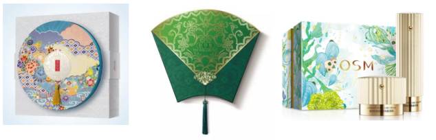 这些礼盒的外包装均与普通化妆品的套装有显著不同,多带有名族特色且蕴含品牌自身的文化,注重于传达品牌理念及其作为本土品牌的自信。