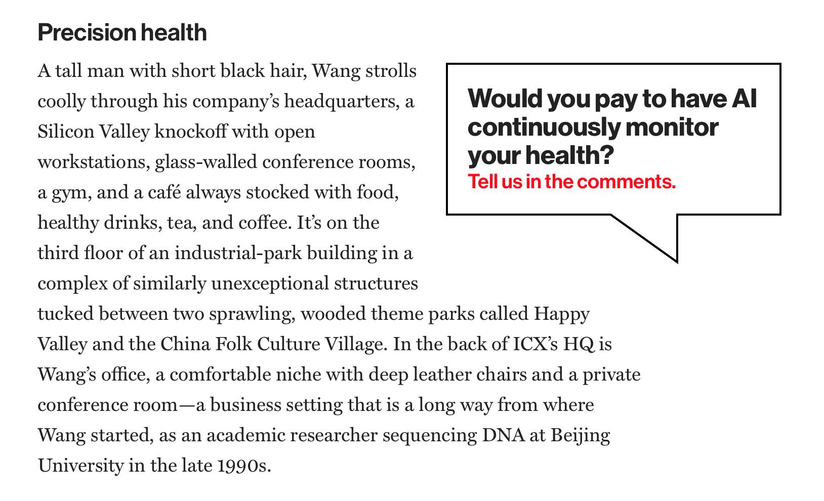 —— “他能否用手上的钱和头脑中的技术,带来一场彻底地的医健革命?”