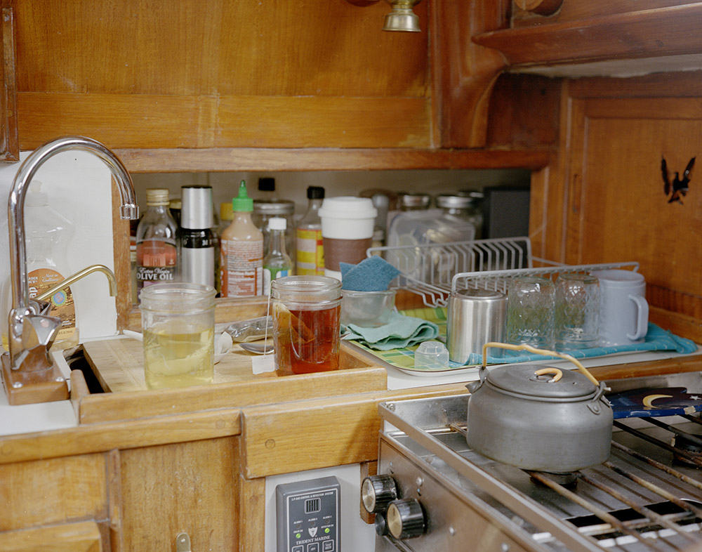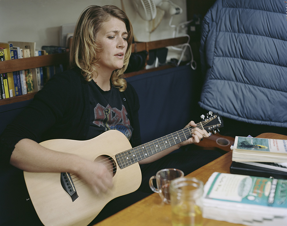 这个女人和她的伴侣住在她们拥有的帆船上。虽然空间狭小,她仍没有放弃她的书籍和吉他。