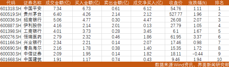 中国平安凭借7.34亿元的成交额位居今日沪股通活跃个股第一,而其净买入额也高达6.12亿元,几乎是贵州茅台(600519.SH)和招商银行两只个股净买入额之和。今日中国平安股价微涨1.11%,报54.76元每股。