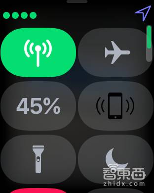 使用Apple Watch的探索者表盘,可以看到表盘中间有一个四个点表示的信号强度,手表主屏幕从下往上滑动调出的快捷操作和状态栏也可以显示信号强度。