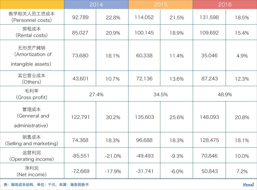 管理成本占比从2014年的30.2%降低到2016年的20.8%,同时,校区数量在不断增加,说明公司整体运营效率在提升。