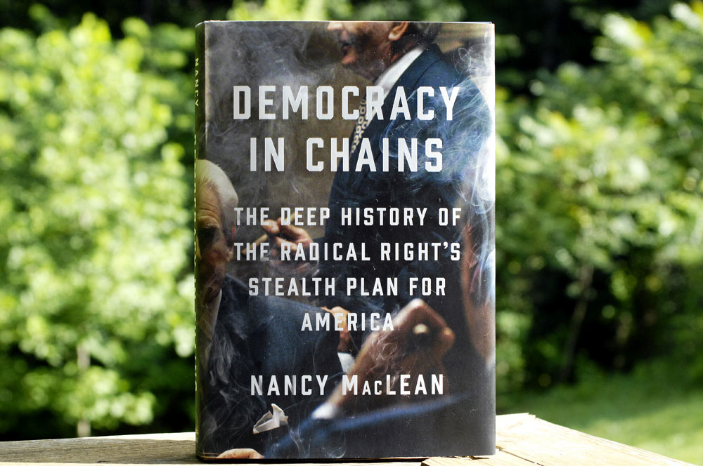 如此这般,麦克莱恩使出其高超的公关手法,美国政治中那种充满愤怒的修辞术则是其温床。尽管她的批评者来自学界,但她还是把这些人等同于一心一意想要扑杀一个女性自由左派学术工作者的极右派“喷子”。然而,她的这一做法忽视了来自左派历史学者的批评,例如萨姆·哈瑟比(Sam Haselby)便质疑道:“布坎南是一位举止温和、有时甚至难以读懂的学院派经济学家,把他说成是半个世纪以来美国整体右转的幕后推手,是很难让人信服的。这本书或许标示出了一个时代里历史编纂学的开端,自那时起,阴谋论逐渐在美国政治生活中占据主流。”