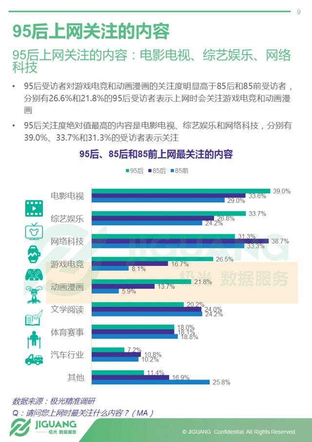 - 爱电影、爱综艺,也爱二次元,95后明显较前辈更热爱游戏电竞及动画动漫