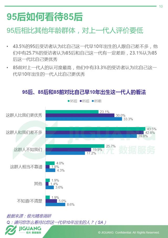 - 自信的一代,对前辈与晚辈的评价均不高