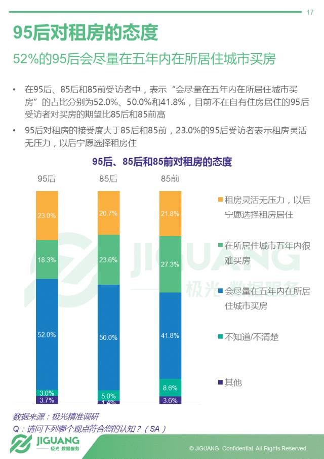 - 过半95后受访者希望5年内买房,但租房的接受度也高于前辈
