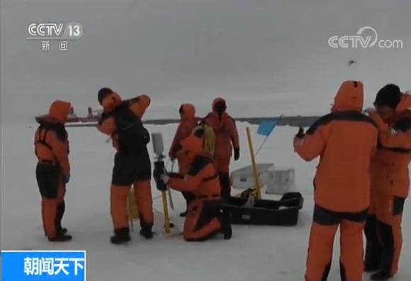 央视记者 牛巧刚:这里是北冰洋北纬82°,东经155°左右,我脚下是一块巨大的浮冰,大概十平方公里,我身后的科考队员正在进行作业,这是今年他们进行的第七块浮冰作业。