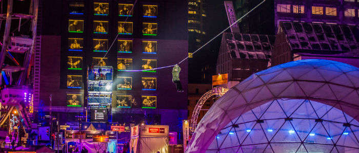 什么吸引中国游客:相对于音乐节和法语狂欢节,更加活泼生动的灯光节显然比前两者能够吸引年轻人。公司代表Eliane Levesque告诉记者,每次灯光节大概有300个活动,其中200个都是免费的,人们可以穿戴科技感十足的发光设备,品尝世界各地的美食或是挑战夜幕下的高空滑索等。她同时表示,目前蒙特利尔节庆活动的客源主要来自于当地或附近的居民,推广活动大多由蒙特利尔旅游局主持,但他们非常乐意接待更多对此感兴趣兴趣的中国媒体或旅游从业者。