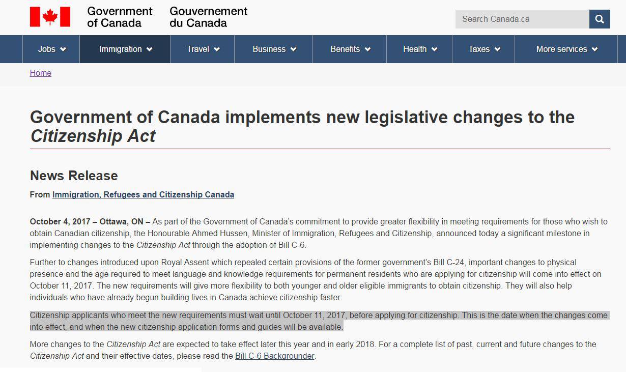加拿大移民局官网消息,令人期待已久的《入籍法》C6法案将于2017年10月11日(明天)正式实施。C6法案实施后,入籍要求有了一些变更,对于新移民、国际留学生都是有利的好消息。