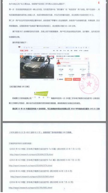 在广告投放时,如果出现具体数字,广告媒体会要求企业提供证言,这些证言多以第三方数据、奖项等内容为主。在此前的广告投放中,优信二手车宣称“成交量突破100万台”,采用的是艾瑞咨询给出的数份二手车电商行业报告。根据这些报告中有关于优信成交量的数据计算,优信二手车在2015年下半年的成交量为25万辆,2016年上半年,优信二手车的成交量达到28.3万辆,2016年下半年,优信二手车成交量为29.1万辆,一年半共计82.4万台。再加上2017年上半年的业绩,而得出广告片中“成交量率先突破100万台”的结论。