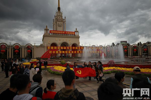 “总书记都来参观了,我们也要来看看啊!” 一手举着自拍杆,一直在按着快门的杨先生生怕错过哪个精彩的画面,拉着妻子不断更换着背景角度“狂拍”合照。