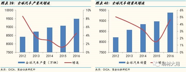 全球方面,2016年全球汽车行业景气度回升,根据OICA统计,全球汽车产量、销量分别为9498、9386万辆,增速分别达到4.55%、4.65%,较15年小幅上升。全球汽车保有量增长较平稳,近年增速保持在4%左右。