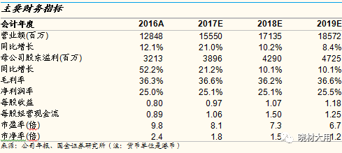 公司作为行业龙头,在产能规模、产品性能及品牌建设方面优势明显,随着行业景气度回升,公司盈利能力持续提升,业绩有望保持快速增长。预计2017-2019年公司EPS分别为0.97,1.07和1.18元,对应17-19年PE为8.1,7.3和6.7倍,首次覆盖,给予“买入”评级。