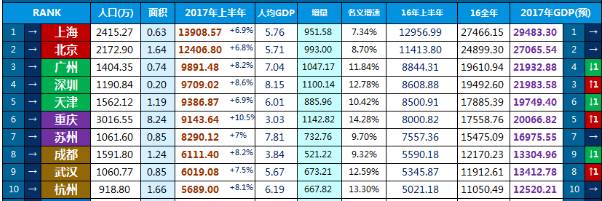 2017上半年,全国地级以上城市GDP上海排名第一,北京第二,广州、深圳、成都、杭州均在TOP10榜单上,这与星巴克门店数量有所呼应。