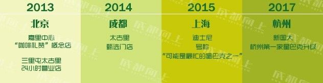 而星巴克在成都开店的脚步也是跟随城市自市中心向城南发展而呈现的 ——