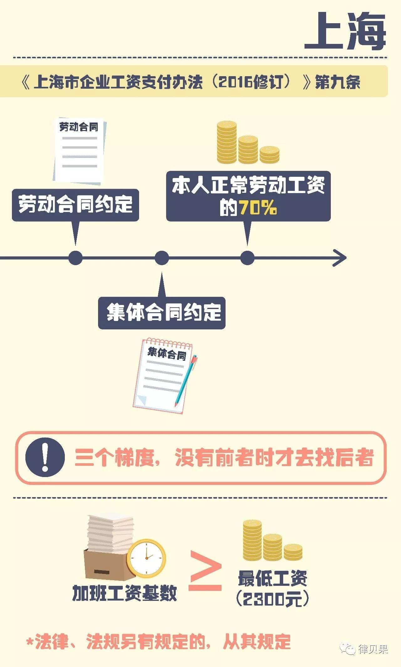 操作流程为:劳动合 同约定(实际支付可以变更)→集体合同约定→本人正常劳动工资的70%。另外,加班工资基数≥最低工资(2300元),法律、法规另有规定的,从其规定。