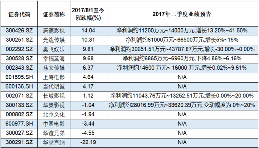 据Wind资讯数据,对8月以来传媒股价涨跌幅进行梳理可以发现,在电视剧行业个股中,唐德影视股价表现在同行里属第一梯队。