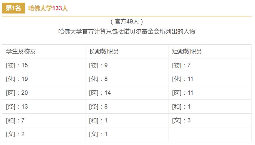 来看看截至2017年的这份世界大学诺贝尔榜单:
