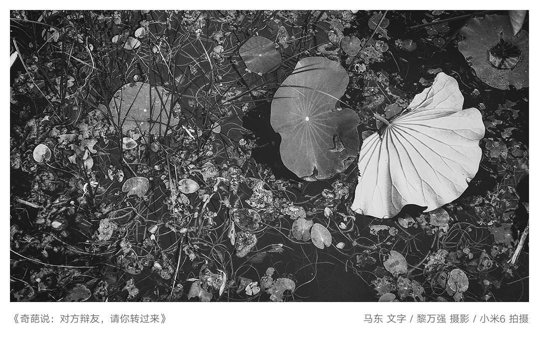 小米联合创始人黎万强做了一场实验影展,设备是小米6,拍摄对象则为公司后的一片荷塘。他请来不少人为这组黑白荷塘照取名,其中不乏马东、苏芒、徐沪生这类名人,还有不少想法天马行空的网友。每个人眼中的荷塘都是截然不同的世界,配文把原本相当抽象的照片变得生动起来。