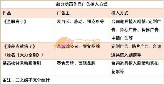 某时长10余分钟的动画作品团队负责人则透露,“我们作品一集的广告植入费用是10-30万,在不影响剧情的情况下,道具可以来两三个,对白可以有两三句”。