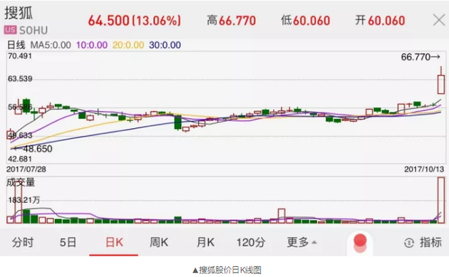 同时,受搜狗发布招股书影响,在美上市的搜狐股价周五收盘大涨13%,创下两年多来新高。根据招股书,搜狐持有搜狗37.8%的股权,搜狐CEO张朝阳持股为9.2%。