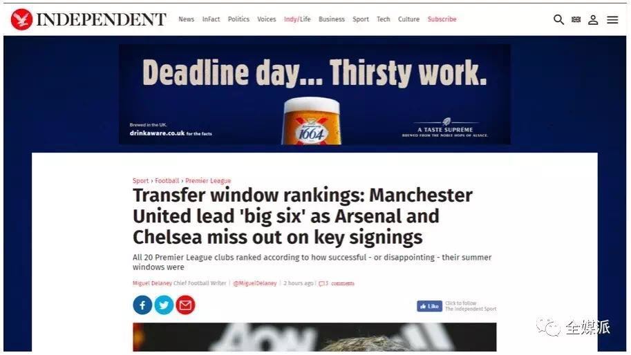 在之前爆款文的选择中,Kronenbourg选择了有关日食和法国总统Emmanuel Macron的文章。目前,品牌又选择了有关足球球员转会窗的文章来投放广告,并且立刻换上了更加应景的文案,算是火速跟了一波热点。