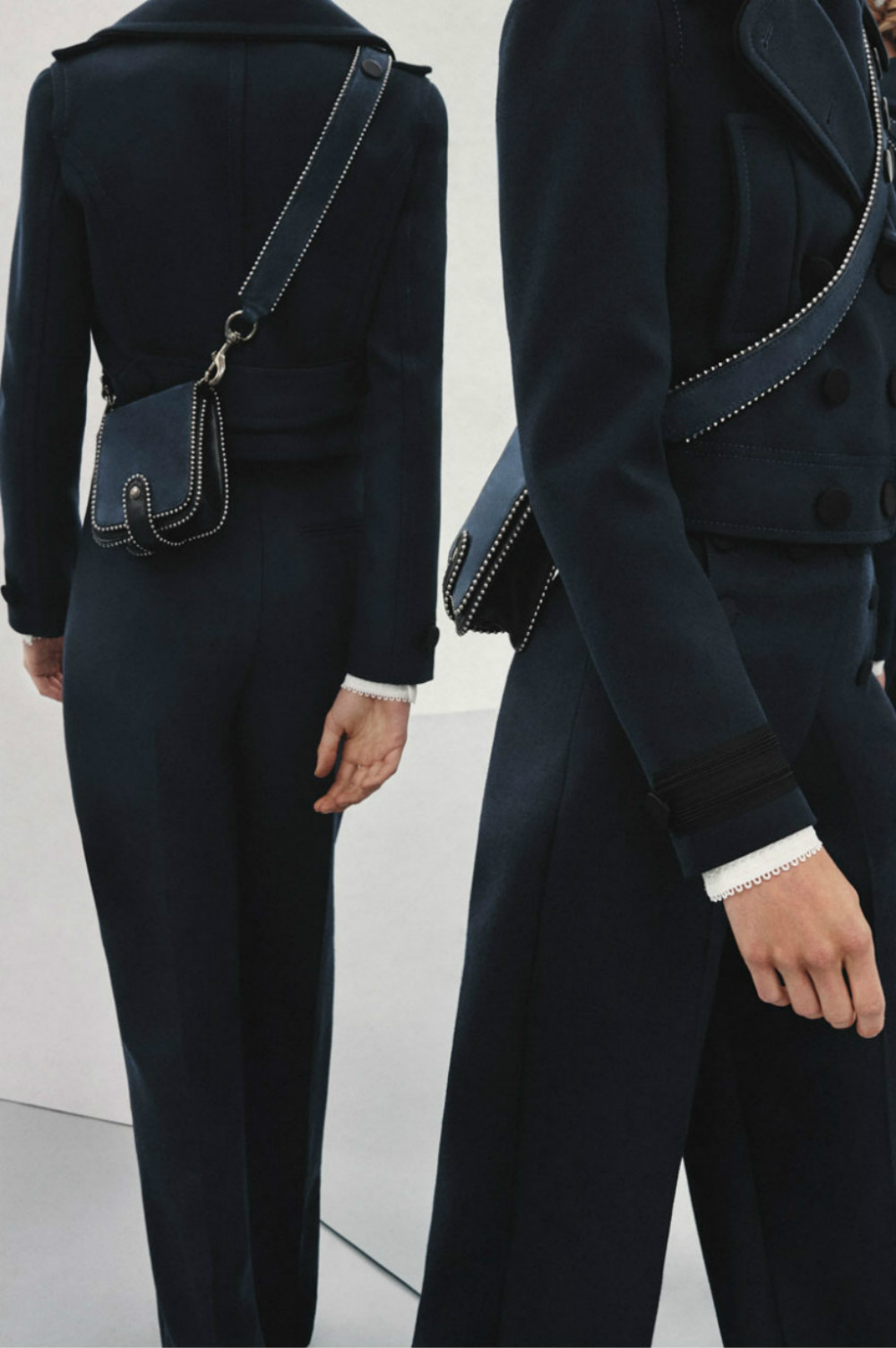 法国时尚博主Jeanne Damas近日为Tory Burch 2017秋冬系列拍摄了街拍照,作为众多穿搭博主一致认可的“法式风情最佳代言人“,由她演绎的这些单品竟然也呈现了令人惊艳的法式风情:白衬衫是营造法式风的必备单品,Tory Burch的这款白衬衫还有刺绣设计,于是博主仅仅简单地搭配了黑色长裤和同色过膝靴,Juliette酒红色包包和红唇相呼应,作为全身点睛之笔;秋冬必备的白色羊毛短款外套内搭米色高领针织衫,这一身的亮点是脚上的棕色粗跟高跟鞋;蓝色高领针织衫搭配黑色阔腿裤,从头到脚“黑化”的风格看起来似乎不那么温婉,不过一枚绿色蜻蜓胸针也有它的妙用——当作发卡别在低马尾上,优雅中带着些许俏皮,创意十足。