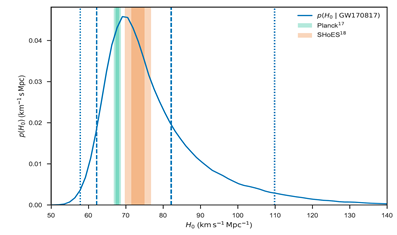 其中v是由光学观测得到的NGC4993的退行速度, 而d是 GW170817 由引力波测到的的距离。