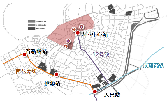 从布局上看本次大邑展示这17宗地块视野极佳,均可远眺雪山,配套丰富,生活成熟,居住价值高。同时,这里也是城市中轴线区域,未来大邑形象风貌的集中展示地,商务价值极高。并且,地块几乎都位于市域快线12号线终点站大邑中心站、成蒲高铁枢纽大邑站、西岭雪山——花水湾旅游轨道专线站点旁边,为典型的轨道交通低密洋房格局,这是很多开发商梦寐以求的产品搭配。