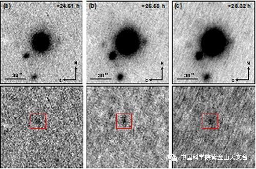 据了解,从北京时间2017年8月18日21:10起(即距离引力波事件发生24小时后),中国南极巡天望远镜AST3合作团队利用正在中国南极昆仑站运行的第2台望远镜AST3-2对GW 170817开展了有效的观测,此次观测持续到8月28日,期间获得了大量的重要数据,并探测到此次引力波事件的光学信号,如下图: