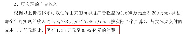 据欢瑞世纪回复深交所的问询函,承包后,公司在安徽卫视的广告上毫无进账。北京卫视上倒是播出了周大福珠宝、安居客、TATA 木门等广告。但是不好意思,这些均为进行客户培育的“赠送”,实际收入算下来仅有可怜的150万元。