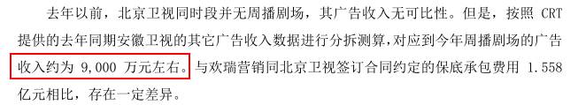 据欢瑞世纪乐观估计,在承包北京卫视和安徽卫视上的亏损至少要达到约1.6亿元。