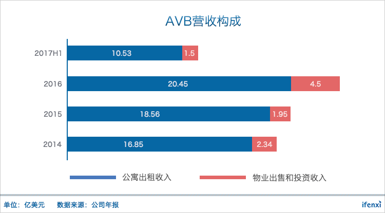 经过持续开发和收购,截至2017年6月,AVB直接或间接持有264个公寓社区,共计76,158间公寓,另有近七千间公寓正在开发中,分布在全美10个州和华盛顿特区,主要包括纽约、波士顿、旧金山等发达城市。