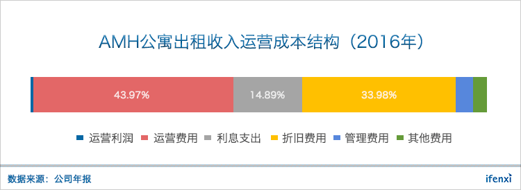 另一家2012年成立的分散式独户公寓管理公司AMH(American Homes 4 Rent),同样采取自持模式,运营费用和折旧费用都显著高于AVB,目前运营利润率只有0.55%。AMH目前运营4.8万个独户公寓,还处在业务发展早期,盈利能力还有提升空间,但从折旧摊销来看劣势明显。相比分散式,集中式公寓运营效率更高,盈利能力更强。